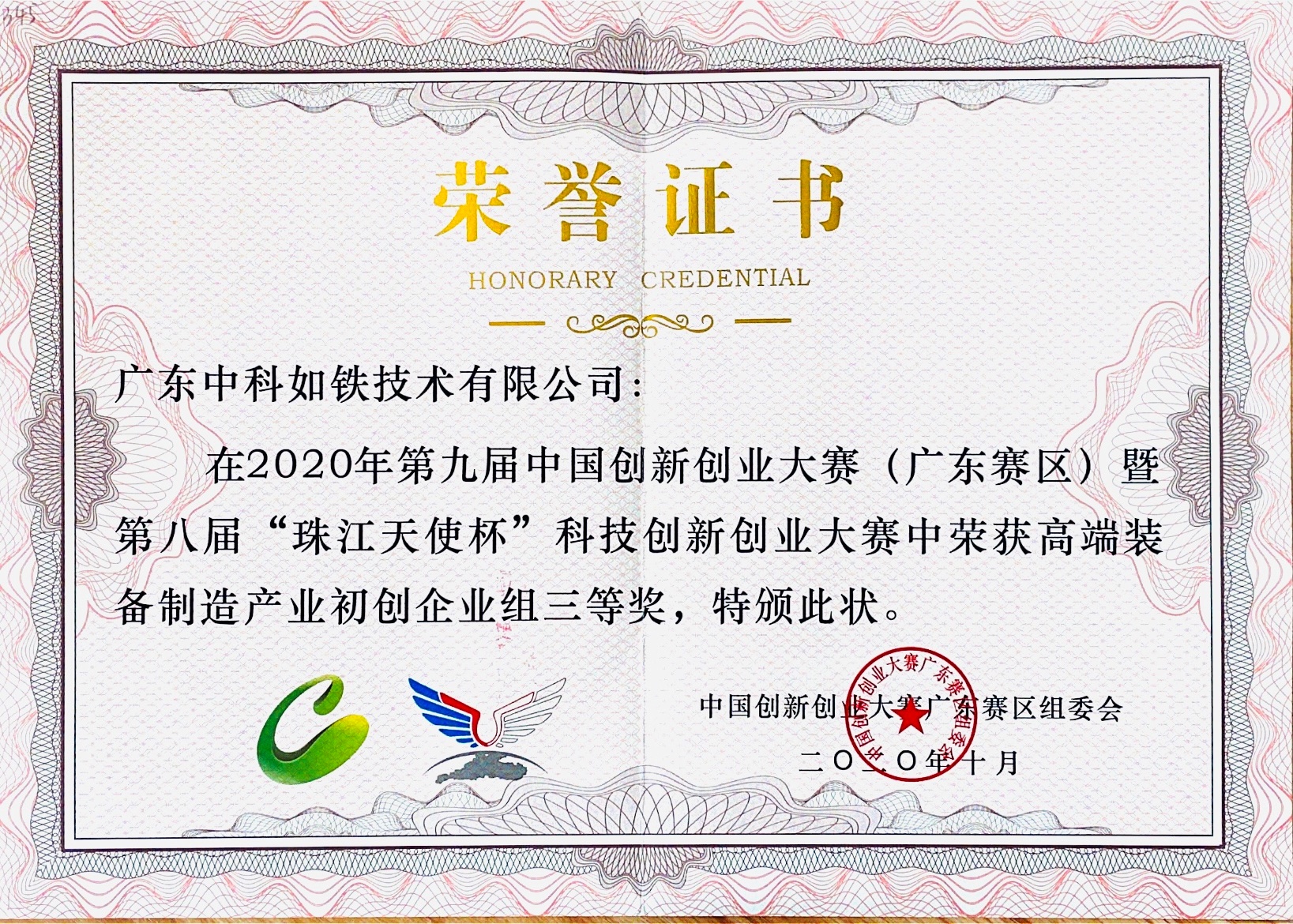 第九届中國創新創業大賽(廣東賽區)三等獎